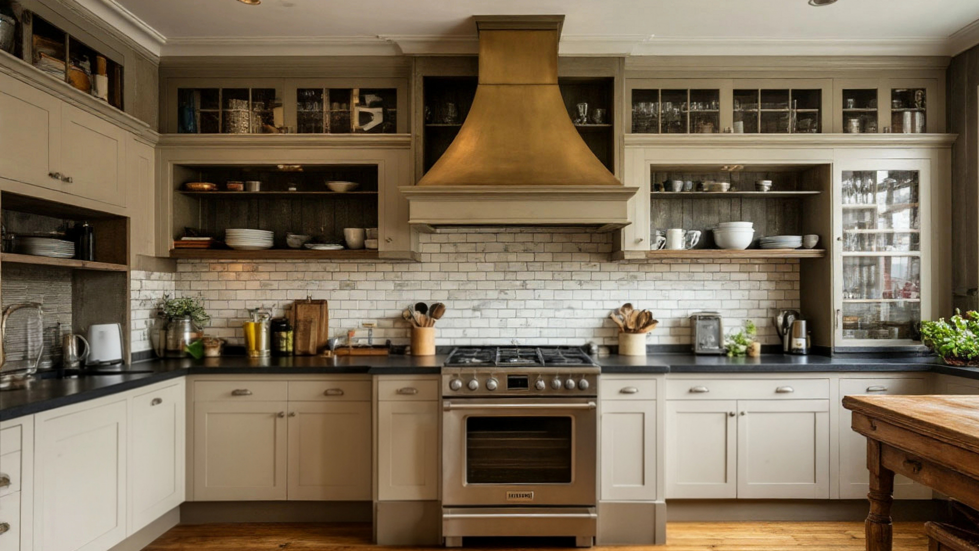 Г-образная планировка кухни обеспечивает эффективное использование пространства. Одновременно доступно много рабочих поверхностей, шкафов и полок, что позволяет рационально распределить зоны хранения и готовки. Центральная часть кухни остается свободной для передвижения, что особенно важно в домах и квартирах с ограниченной площадью.