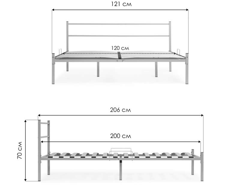 Длина кровати: 206 см.