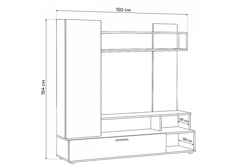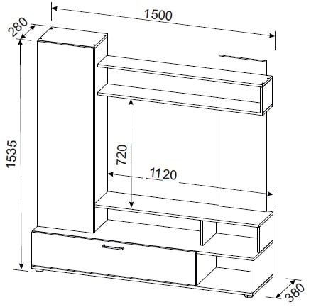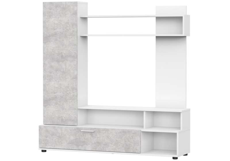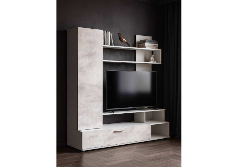 • Идеальная Интеграция Медиа-Центра: Центральное место в композиции занимает специально разработанная ниша под ТВ (111 х 72 см). Эти размеры идеально подходят для большинства современных телевизоров с диагональю до 50-55 дюймов (в зависимости от ширины рамок), обеспечивая аккуратное и гармоничное размещение вашего медиа-устройства. Ваш телевизор будет выглядеть как естественная часть интерьера, а не как отдельный элемент, привнося визуальный порядок и завершенность в зону отдыха.